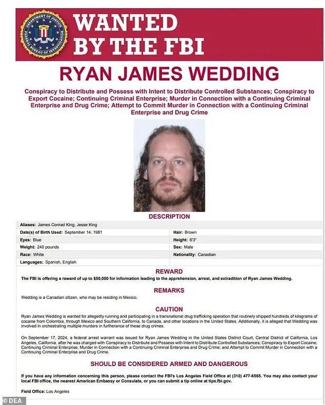 川普总统对墨西哥毒贩的持续军事压力取得成效。周五(1月23日),联邦调查局(FBI)正式宣布,已经抓获加拿大前奥运单板滑雪运动员、后转型为大毒枭的瑞安·韦丁(Ryan Wedding)。这位44岁的加拿大男子涉嫌领导一个跨国贩毒集团,与墨西哥锡那罗亚贩毒集团(Sinaloa Cartel)密切合作,被指控走私巨量可卡因并策划多起谋杀案。