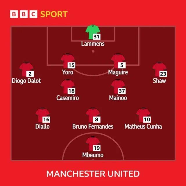 遭遇首败11天后,卡里克对曼联首发阵容做出两处调整,谢什科回到替补席,阿马德·迪亚洛重返先发踢右边锋,迪奥古·达洛则取代了马兹拉维的位置,担任右边卫。